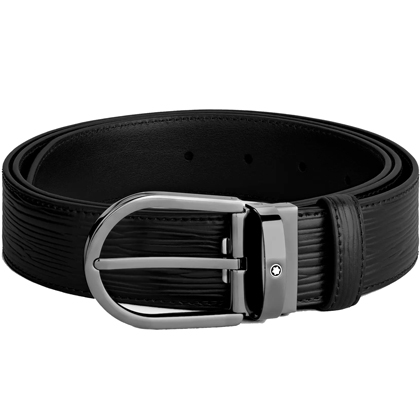 Черный кожаный ремень с подковообразной пряжкой 35мм от магазина премиальных ручек Premium Pens в Йошкар-Оле.